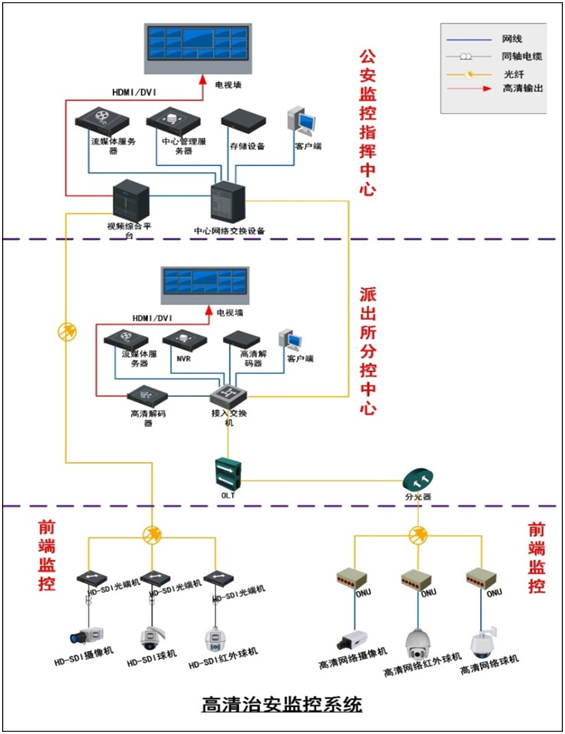 全面采用高清監控技術,在城市重點區域、公共重點部位、轄區交通道路、重要職能部門、民生重點單位、街道社區周邊等區域展開布點建設,達到“點、線、面”全覆蓋,重點區域不留死角,并建立遠距離全局把握、區域就近感知和近距離深入觀測的立體防控體系。