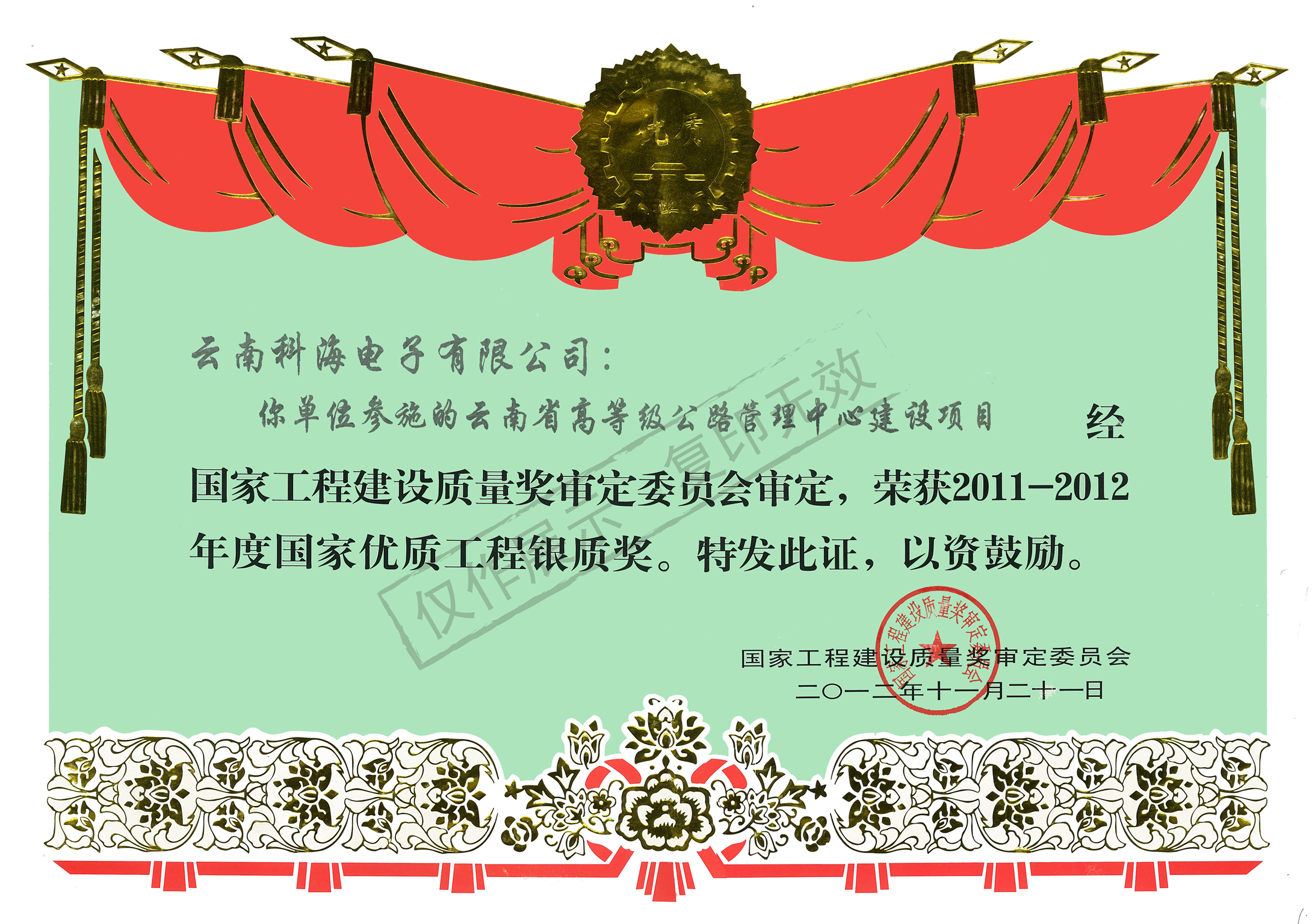 高等級(jí)高速公路管理中心國家優(yōu)質(zhì)工程銀獎(jiǎng)